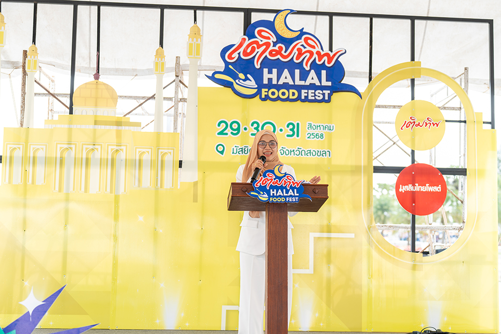 คุณอริญชย์ เพ็งแป้น ผู้จัดการฝ่ายการตลาด บริษัท วันทูเทรดดิ้ง จำกัด ผู้จัดจำหน่ายผงปรุงรส “เติมทิพ” เป็นประธานเปิดงาน - TERMTIP HALAL FOOD FEST 2025 มหกรรมอาหารฮาลาลสุดยิ่งใหญ่แห่งปี ที่จัดที่มัสยิดกลางประจำจังหวัดสงขลา ศูนย์รวมความศรัทธาและศูนย์กลางวัฒนธรรมมุสลิมในภาคใต้ งานนี้พร้อมเปิดประตูต้อนรับทุกท่านให้มาสัมผัสรสชาติ ความหลากหลาย และเสน่ห์แห่งวัฒนธรรมฮาลาลอย่างใกล้ชิด