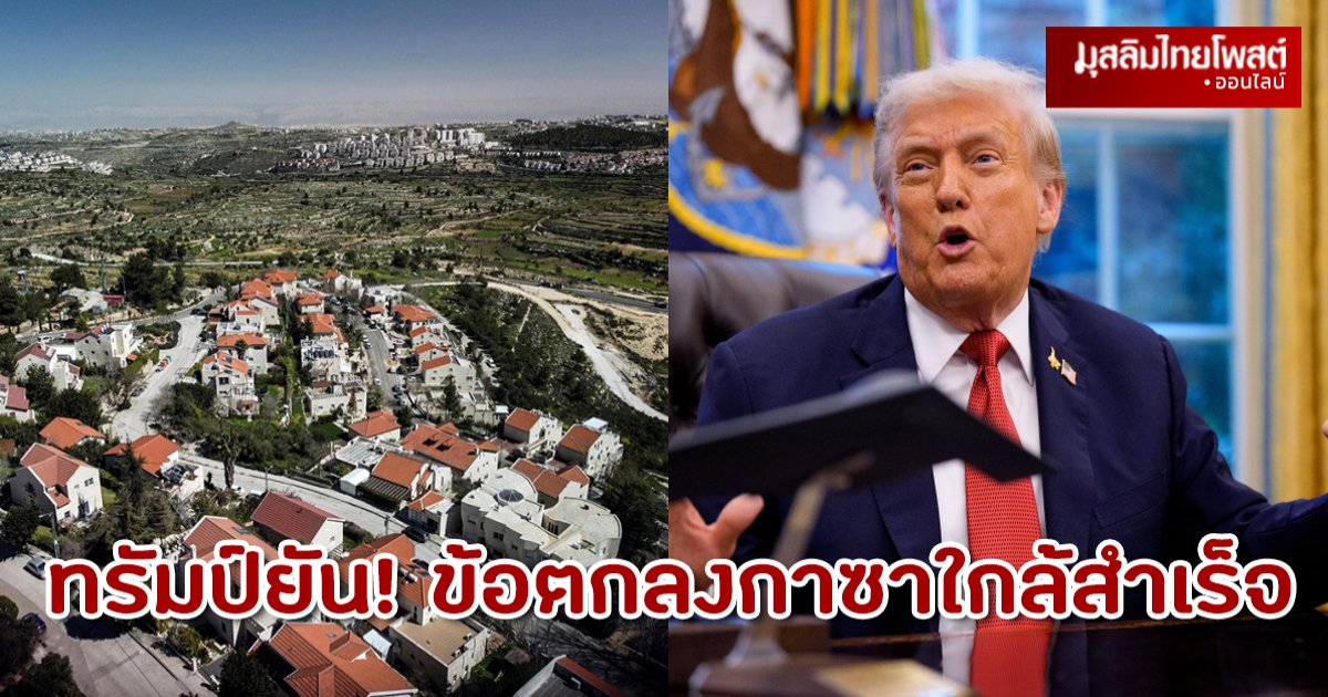 สำนักข่าวมุสลิมไทยโพสต์: ทรัมป์ยัน! ข้อตกลงกาซาใกล้สำเร็จ-คัดค้านผนวกเวสต์แบงก์