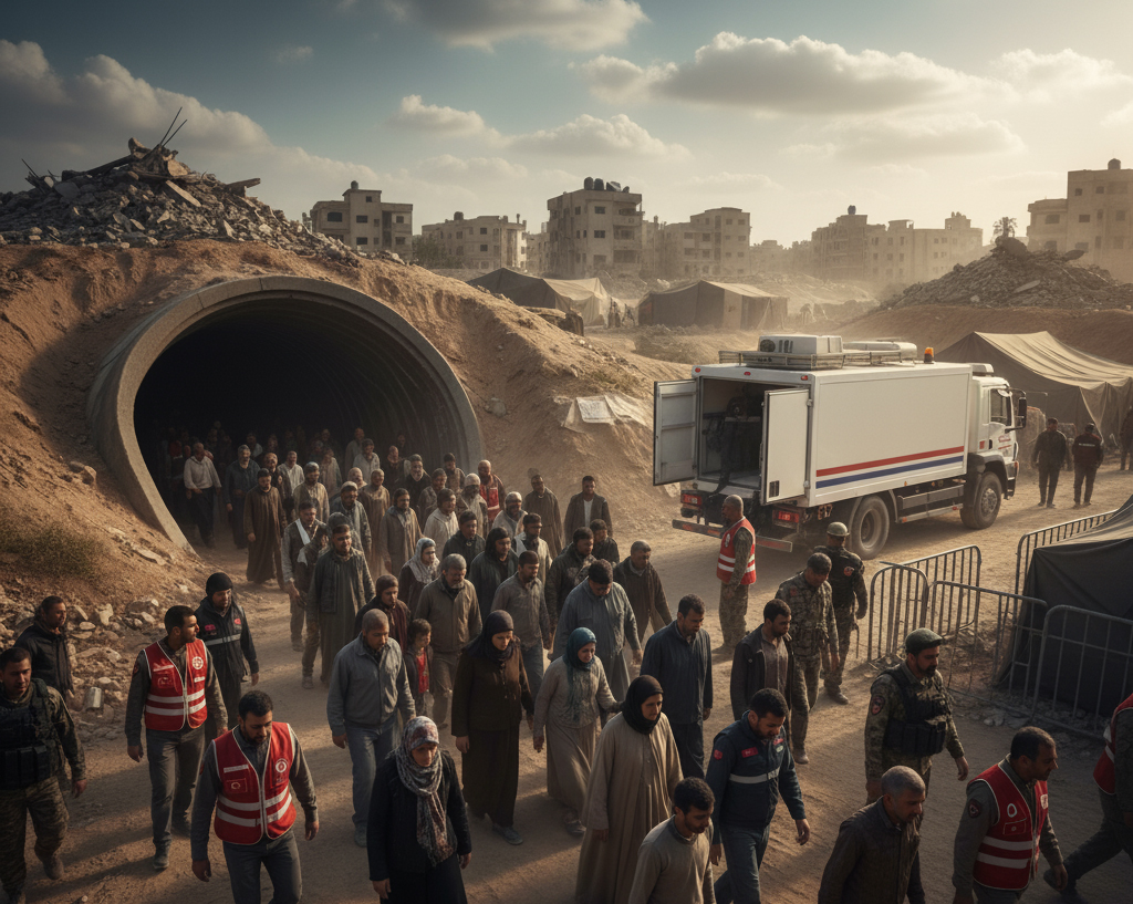 เจ้าหน้าที่ตุรเคีย กล่าวเมื่อวันที่ 9 พฤศจิกายน ที่ผ่านมา ว่าตุรเคียกำลังดำเนินการเพื่อให้พลเรือนราว 200 คน ที่ติดอยู่ในอุโมงค์ในฉนวนกาซา เดินทางกลับอย่างปลอดภัย หลังจากช่วยนำร่างของทหารอิสราเอลที่เสียชีวิตในเหตุสู้รบเมื่อกว่า 10 ปีก่อนกลับคืนมาได้