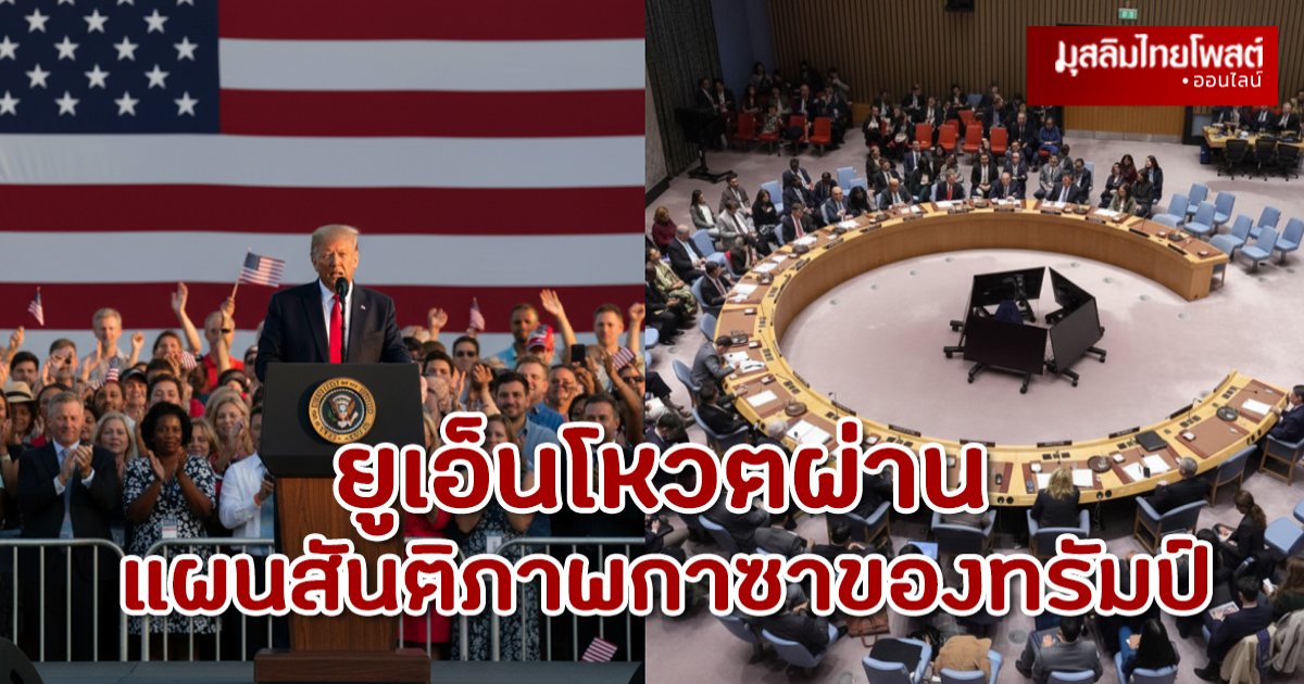 สำนักข่าวมุสลิมไทยโพสต์: ยูเอ็นโหวตผ่าน แผนสันติภาพกาซาของทรัมป์