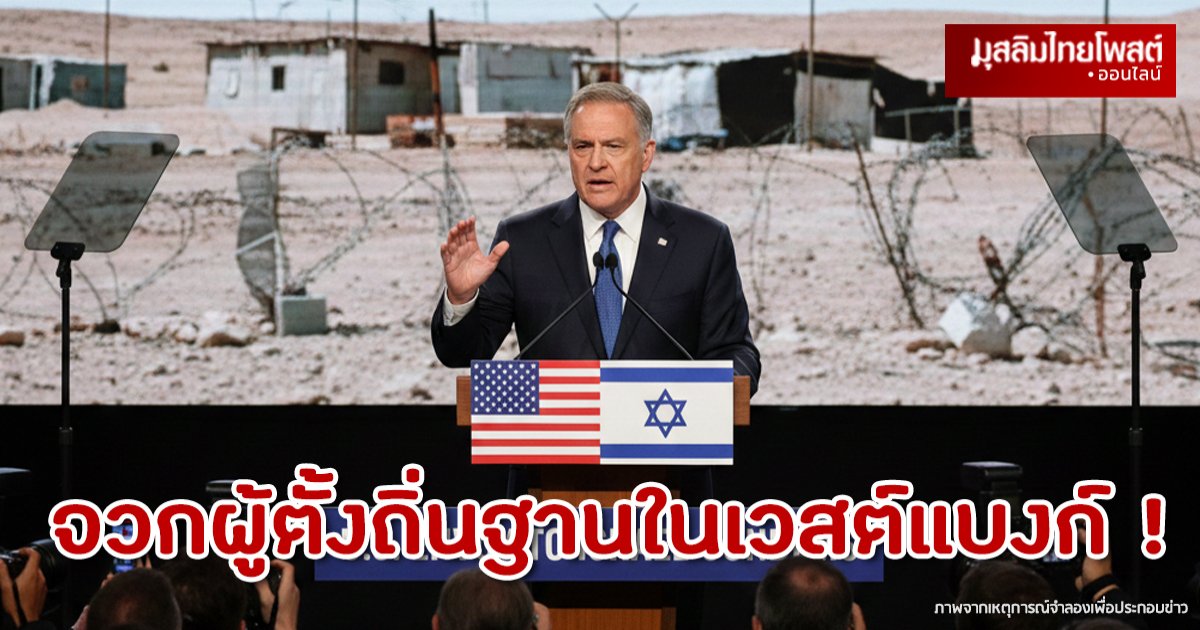 สำนักข่าวมุสลิมไทยโพสต์: ทูตสหรัฐฯ จวกผู้ตั้งถิ่นฐานในเวสต์แบงก์ เป็น “กลุ่มก่อการร้าย”