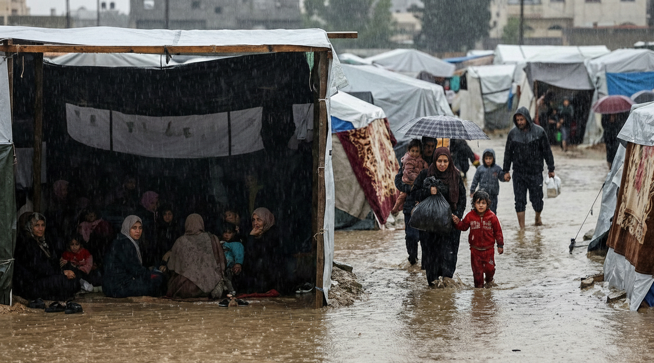 ยิ่งไปกว่านั้น ฝนที่ตกหนักในช่วงไม่กี่วันที่ผ่านมา ได้ทำลายเต็นท์หลายร้อยหลังในหลายพื้นที่ของฉนวนกาซา ทำให้ความสามารถในการรับมือเหตุฉุกเฉินที่มีอยู่อย่างจำกัดไม่อาจดำเนินไปได้