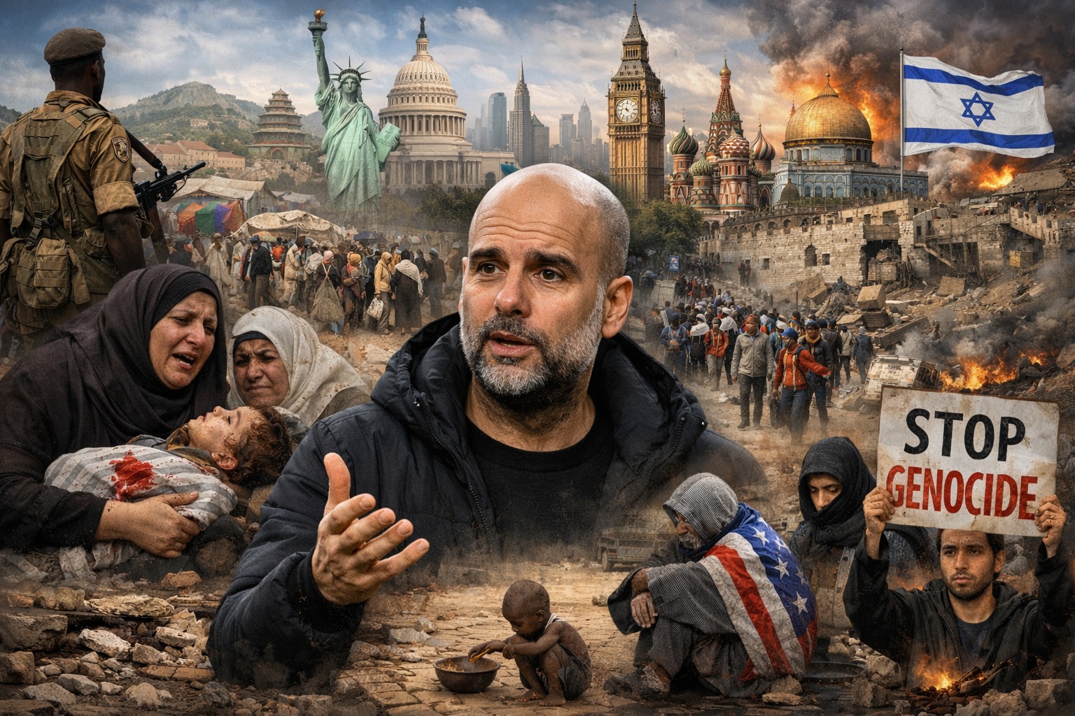 รายงานโดยสำนักข่าวมุสลิมไทยโพสต์ - ในการแถลงข่าวล่วงหน้า ก่อนการฟาดแข้งเกมคาราบาวคัพรอบรองชนะเลิศนัดที่ 2 กับทีมนิวคาสเซิล ยูไนเต็ด เป๊ป กวาร์ดิโอลา ผู้จัดการทีมแมนเชสเตอร์ ซิตี้ กล่าวว่า การสังหารผู้บริสุทธิ์ทั่วโลกส่งผลกระทบอย่างลึกซึ้งต่อเขา และเรียกร้องให้ผู้คนอย่านิ่งเฉยต่อความอยุติธรรม