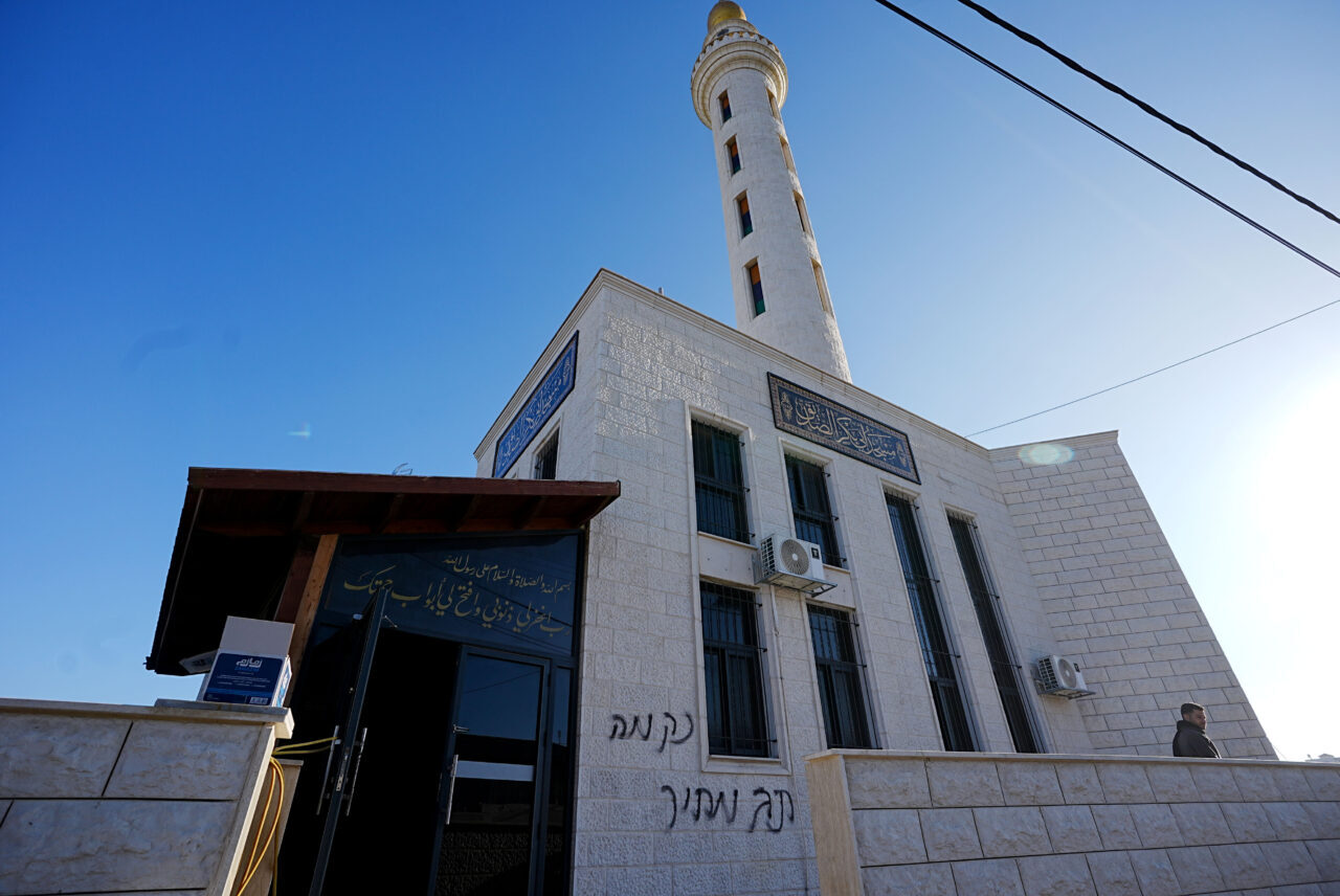 ตามรายงานของทางการปาเลสไตน์ ผู้ตั้งถิ่นฐานได้จุดไฟเผาบางส่วนของมัสยิดและพ่นสีสเปรย์เหยียดเชื้อชาติบนกำแพง รวมถึงคำขวัญต่าง ๆ เช่น “แก้แค้น” เหตุการณ์ดังกล่าวถูกบันทึกไว้โดยกล้องวงจรปิดและได้รับการยืนยันจากกระทรวงศาสนสมบัติของปาเลสไตน์