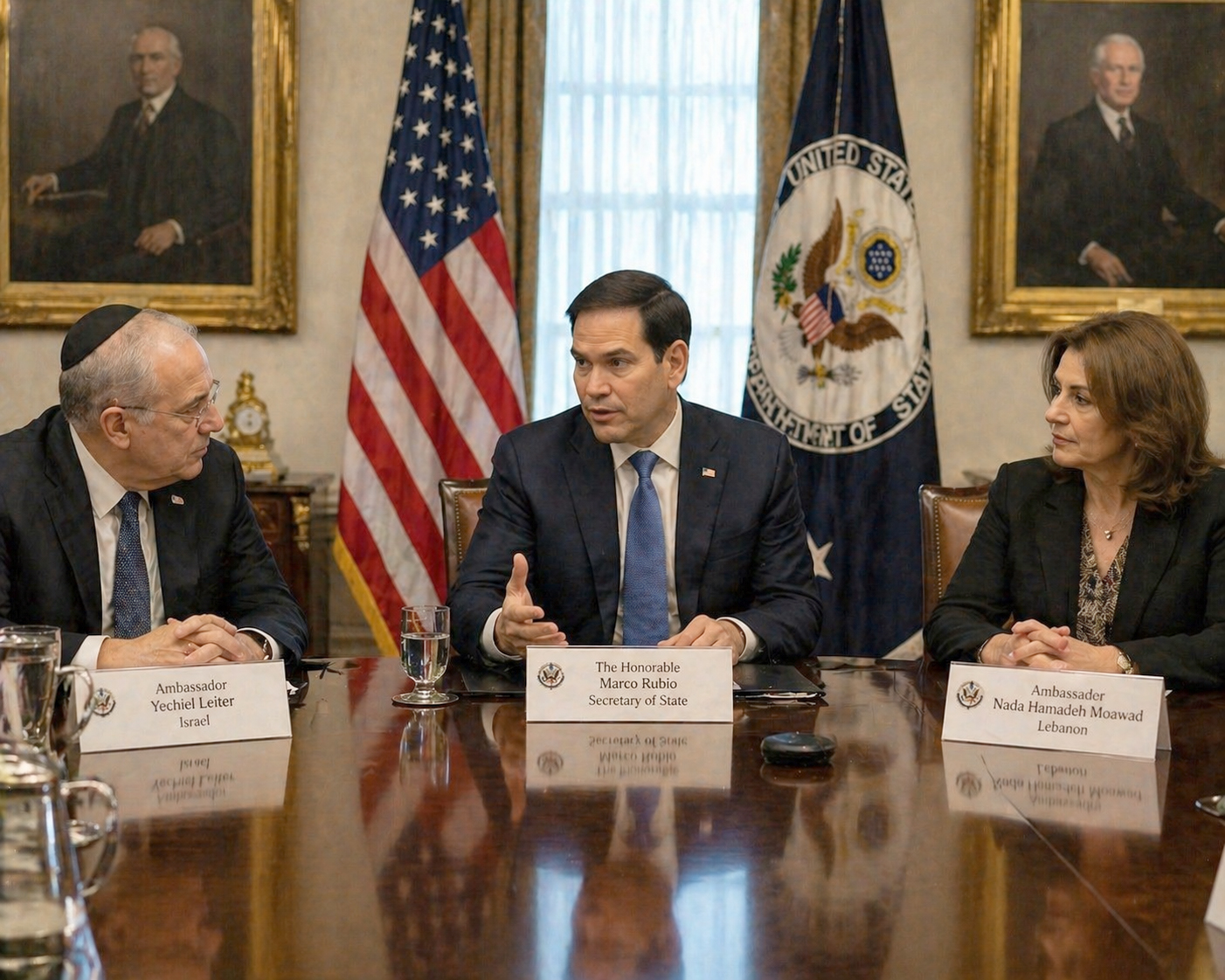 สองประเทศซึ่งอยู่ในภาวะสงครามอย่างเป็นทางการมานานหลายทศวรรษ ได้จัดการประชุมที่กรุงวอชิงตันเมื่อวันที่ 14 เมษายน ซึ่งเป็นการประชุมครั้งแรกนับตั้งแต่ปี 1993 เพื่อพยายามยุติสงครามที่ยืดเยื้อมานานกว่า 6 สัปดาห์ระหว่างฮิซบอลเลาะฮ์และอิสราเอล โดยสหรัฐ ฯ ประกาศหยุดยิงเป็นเวลา 10 วันหลังจากการประชุมครั้งแรกไม่นาน และจะหมดอายุในวันอาทิตย์ ที่ 26 เมษายน ที่จะถึงนี้
